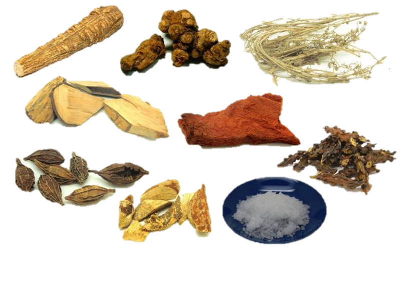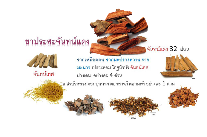เป็นตำรับยาที่ประกอบไปด้วยแก่นจันทน์แดง 32 ส่วน และสมุนไพรอื่นๆ มีรสเย็น ตำรับยานี้จึงช่วย แก้ไข้ตัวร้อน ไข้เปลี่ยนฤดู แก้ร้อนในกระหายน้ำ ช่วยกระจายลม และช่วยแก้ปวดศีรษะ นอกจากนี้ยังมีฤทธิ์ต้านการอักเสบ ข้อควรระวังสำหรับผู้ที่แพ้ละอองเกสรดอกไม้ เนื่องจากในตำรับมีดอกไม้เป็นส่วนประกอบในตำรับด้วย
